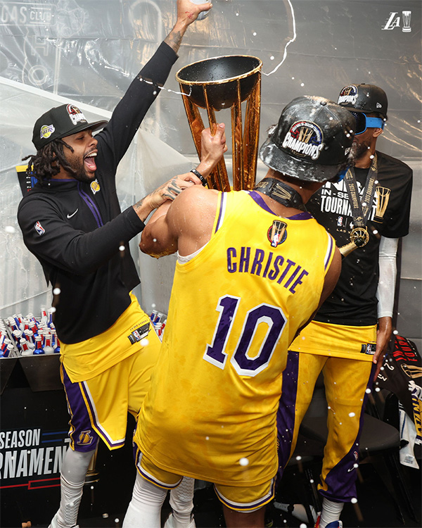 来源:JRS直播网12-11 13:51JRS直播网讯12月11日,湖人在拉斯维加斯击败步行者夺得史上第一个季中赛冠军,詹姆斯第一个举起冠军奖杯疯狂庆祝并且荣获季中赛MVP;夺冠后全队合影,詹姆斯坐在最显眼的位置;赛后更衣室狂欢,詹姆斯狂喷香槟庆祝,拉塞尔等人直接用奖杯喝香槟。