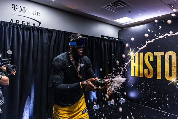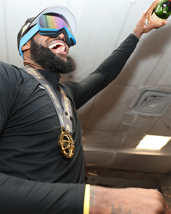 湖人夺冠后更衣室狂欢:詹皇狂喷香槟嗨翻天浓眉咧嘴大笑