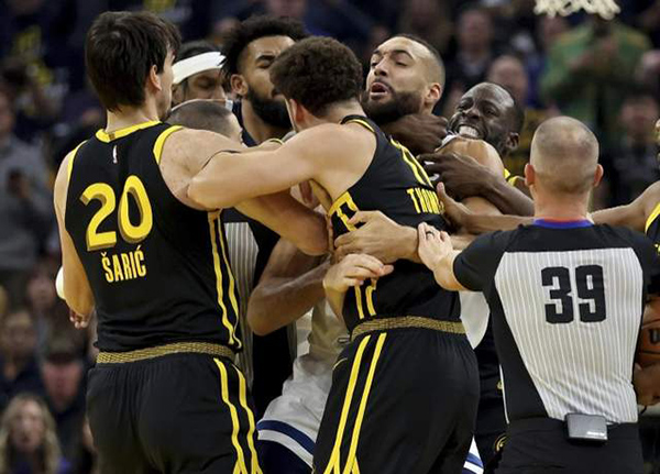 在对阵森林狼的比赛中,追梦格林在克莱和麦克丹尼尔斯发生冲突之后,对试图劝架的戈贝尔进行了锁喉。随后,追梦格林遭到驱逐。早前,NBA对追梦格林做出处罚,他被停薪禁赛5场比赛。