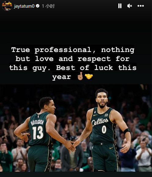 塔图姆晒照告别两大队友;塔图姆更新INS,晒照告别布罗格登,配文写道:你是真正的职业球员,对你只有爱与尊重。祝你新赛季好运。