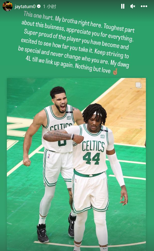 塔图姆也向罗威道别,写道:这很让人伤心。这就是这门生意最艰难的部分,谢谢你的一切。你已经成为了一名非常令我骄傲的球员,并且我很高兴看到你能走多远。努力做到与众不同,永远不要改变自己。我一生的兄弟,直到我们再次连接。对你只有爱。