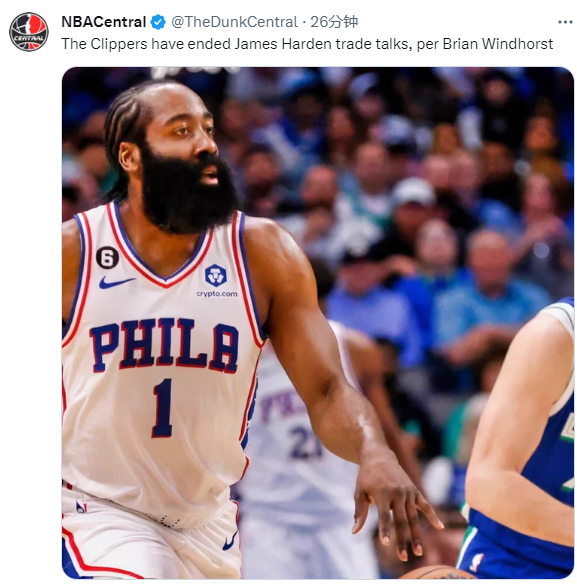 曝快船结束哈登交易谈判!登哥联手乔卡冲冠希望破灭:交易不会发生了