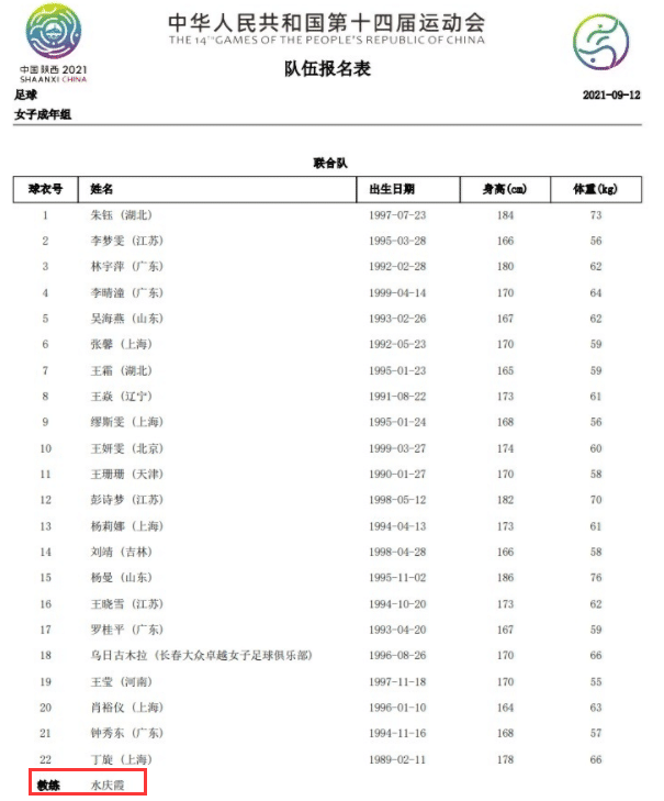 来源:JRS直播网09-13 19:22JRS直播网讯讯 9月13日,中国女足以“联合队”名义参加本届全运会,现在名单已经正式出炉,王霜和王珊珊等参加了东京奥运会的球员们在列,最值得关注的是主教练的名单,由水庆霞来担任,而不是目前中国女足的主帅贾秀全,要知道的是虽然贾秀全带队在奥运会表现极度糟糕,但他依旧没有官宣下课,还是中国女足的主帅。但是派出女足参赛,却不让贾秀全带队,很显然贾秀全距离下课也非常接近了。