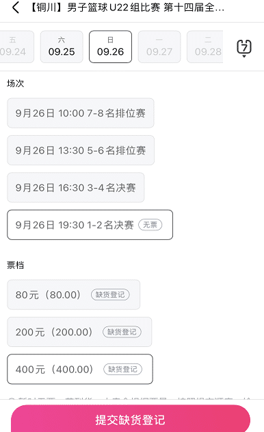 来源:JRS直播网09-12 15:05JRS直播网讯9月12日讯,全运会男篮U22的门票开售,可以说非常火爆,主要是体现在决赛层面,开售瞬间售罄,包括了最贵的400元档次,真的可以用一票难求来形容。值得一提的是全运会的门票不是先开售已经确定的小组赛,而是全部开放,买决赛的门票,需要对于自己喜欢的球队有自信心,否则一旦淘汰赛爆冷,强队是很有可能无法会师决赛的。