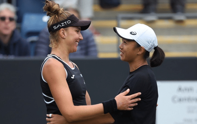 张帅在首盘4-5落后的情况下,宣布退赛。同时,她和梅尔滕斯也退出了随后的双打决赛。在赛后发言中,张帅恳切地表示:“今天要打两场单打,对我来说非常艰难,再加上这周已经打了七场比赛,还要面对从室内硬地到草地的转换,我的身体坚持不下去了,对此我很抱歉。”张帅随后还祝贺玛雅连夺两冠,并且感谢玛雅在自己教练不在的情况下,一直陪她热身。张帅最后表示:“我真的很为你感到开心。”