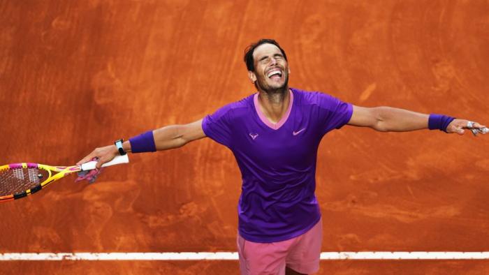 来源:JRS直播网05-06 20:54JRS直播网讯05月06日讯 周四在马德里举行的大师赛16强赛中,21次大满贯冠军纳达尔在抢七中挽救了四个赛点,以6-3、5-7、7-6(9)的比分击败了曾经的前十球员戈芬,这对他来说是具有里程碑意义的一天。