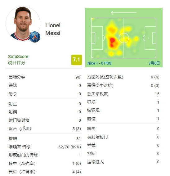 JRS直播网讯讯3月6日讯 消息,在巴黎爆冷不敌尼斯的比赛中,梅西交出了0射门0进球0助攻和0过人的数据。