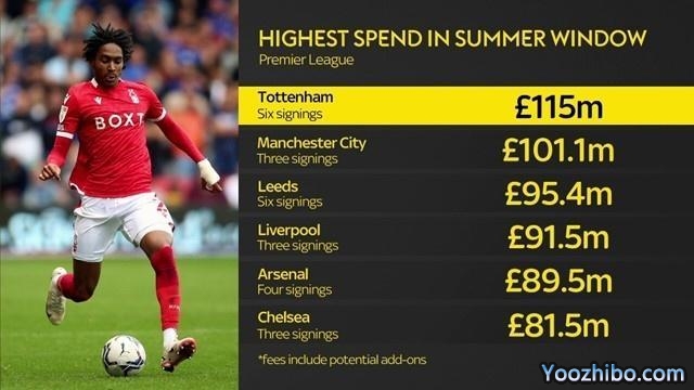 英超球队夏窗支出榜(包含浮动条款):