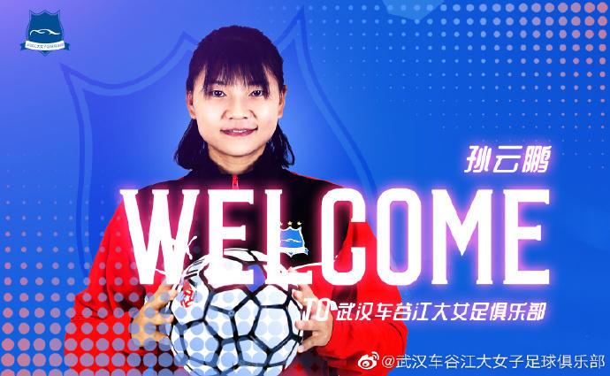 2023赛季,欢迎孙云鹏加入武汉车谷江大女足,希望凭借她丰富的比赛经历,来提升武汉女足防守厚度,帮助球队取得更优异的成绩。